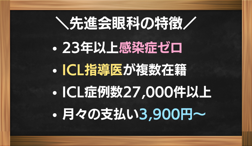ICL指導医が在籍し、全国トップクラスの症例数を誇る先進会眼科は、レンズ選定から術後ケアまでの体制が徹底しています。
